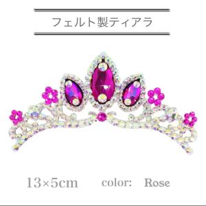 髪飾り ティアラ ストーン付き フェルトティアラ ダンス髪飾り 衣装髪飾り ローズカラー