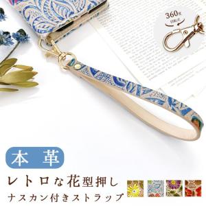 花柄 ナスカン付き マルチストラップ 携帯ストラップ レザー 携帯 スマホ