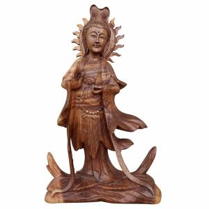 観音菩薩の木彫り彫刻 クァンイン 木製 スワール無垢材 44cm 釈迦 仏像 ブッダの木彫り 観音菩薩像 観音像 Dewi Quan yin 080797