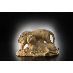 黄楊彫り 夫婦虎 小 彫刻 葉偉混作 黄楊彫り 黄楊 ツゲ 虎 夫婦虎 厄払い 厄除け 魔除け 木彫 幸運 福運 開運 檜 お守り 子育て 開運