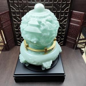 葉偉混 作 黒檀 吉祥龍神如意宝珠 置き物 縁起物 木彫り 彫刻 ヨウ イコン 辰年