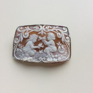 Ciro Accanito作 シェルカメオK18ペンダントブローチ【天使の家族】