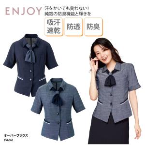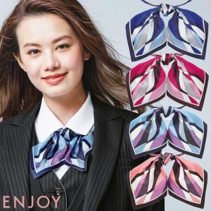 受付 オフィスウェア レディース グレー ネイビー スカーフ リボン 速乾 抗菌 防臭 エレガント ENJOY ESA663 刺繍 プリント