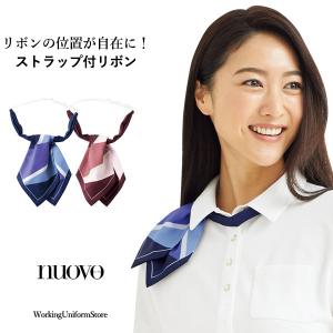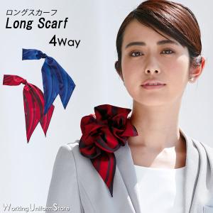ロングスカーフ リング付き リバーシブル ネクタイ風 片リボン結び EAZ1019 スカーフ 受付 オフィスウェア 制服 ユニフォーム ENJOY 爆買