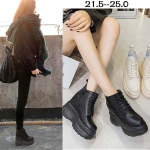 レザースニーカー ショートブーツ レディース 厚底 ローヒール 編上げタイプ 歩きやすい 痛くない ヒール8センチ 美足 防寒 秋冬 PU 韓国 ブラウン 黒 通勤 大人