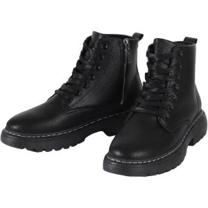 アスペルシオ ハイカット 編み上げ ブーツ サイドジップ 厚底 レースアップ シューズ メンズ(ロータスブラック, 24.5 cm)
