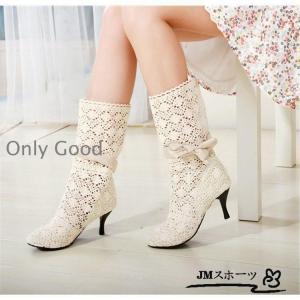 夏ブーツサマーブーツレースリボンハイヒールミドルブーツ