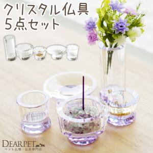 ペット仏具 クリスタル 5点 ガラス仏具セット カラー パープル クリア かわいい きらきら 線香・ロウソクサンプル付 ペット供養 きれい 犬 猫 うさぎ