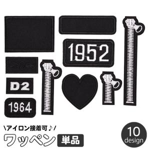 ワッペン アップリケ 単品 1枚 衣服パッチ アイロン接着 補修 チャック ジッパー ハート ロゴ 数字 ブラック 黒 おしゃれ かっこいい