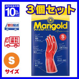 送料無料 マリーゴールド ハピネス ゴム手袋 キッチングローブ 赤 かわいい 食器洗い 炊事手袋 キッチンゴム手袋 3双セット S or M or Lサイズ