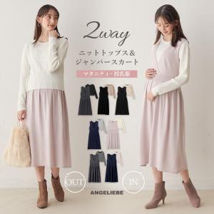 ANGELIEBE マタニティ ジャンパースカート ニット ワンピース 冬 秋冬 長袖 ロング 仕事 オフィス セット