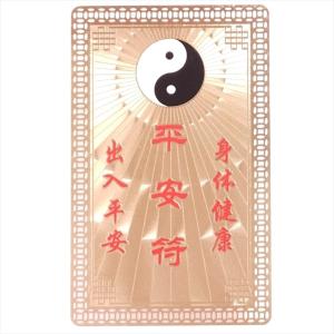 金色05 平安符 お守り 金属 カード 太極図 専用カード入れ付き