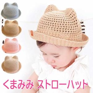 ベビー 帽子 麦わら帽子 赤ちゃん 日除け キッズ 帽子 メッシュ つば 春 夏 くま 耳付き キャップ 新生児 男の子 女の子 ガーゼ かわいい 保育園 アウトレット