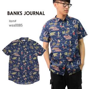 SS SHIRT (MENS) 半袖シャツ ネイビーメンズ バンクスジャーナル サーフプリント 柄シャツ 開襟 ネコポス発送