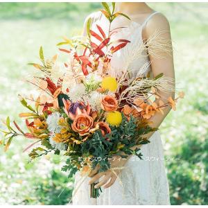 ウエディングブーケ 二次会 結婚式 造花 ウェディング 花嫁 ブライダルブーケ 花束 ローズ バラ オフホワイト 披露宴 リボン パール シンプル