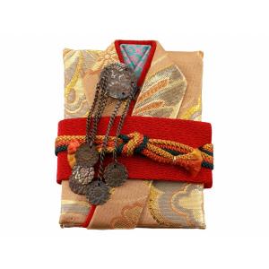せこセット 7歳 女の子用 筥迫(はこせこ) 草履 バッグ 小物セット「ゴールド系、梅」YHS15642