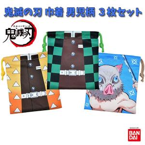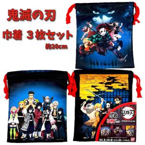 巾着 コップ袋 3枚セット 鬼滅の刃 男の子 男児 きめつのやいば 給食袋 学童用袋 キッズ グッズ 巾着袋 お得