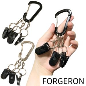 FORGERON マルチ3連クリップ付カラビナキーホルダー 強力クリップ3個付き グローブ 手袋 キャップ タオル マスク ぶら下げ パターカバーホルダー 男女兼用[503R]