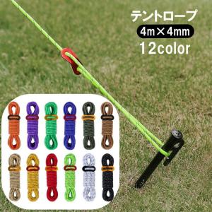 テントロープ ガイロープ 4m タープロープ 反射 固定バックル付き アウトドア テントアクセサリー テント設営用品 おしゃれ 縄 紐 ヒモ 便利 キ