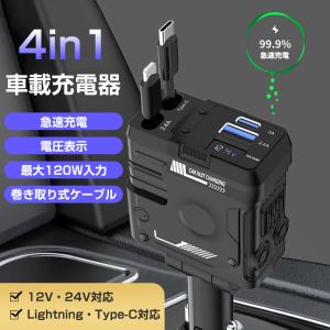 シガーソケット 4in1 usbポート 120W カーチャージャー 12V 24V 急速充電 スマホ 乗用車 トラック 巻き取り式 延長 爆買