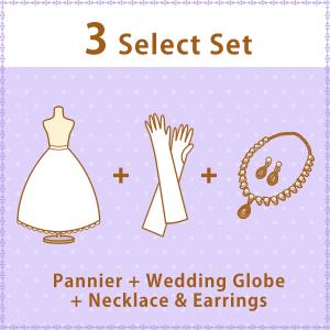 パニエ・グローブ・ネックレス&イヤリングのお得な3点セットブライダル