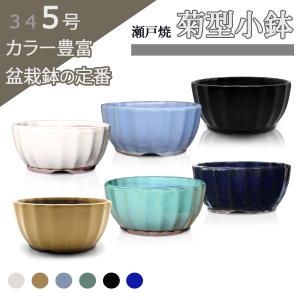 盆栽鉢 陶器 5号 菊型小鉢 小さい おしゃれ 専門店 緑 白 青 水色 黄 黒マット 六色展開 瀬戸焼 丸 円 山野草 アガベ 塊根植物 多肉 植木鉢 約15センチ 3 4 5
