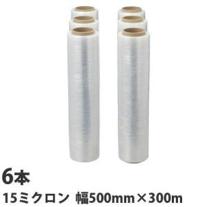15ミクロン 500mm幅×300m 6巻入 / 手巻き 大型ラップ 梱包用フィルム 梱包資材 業務用 倉庫作業