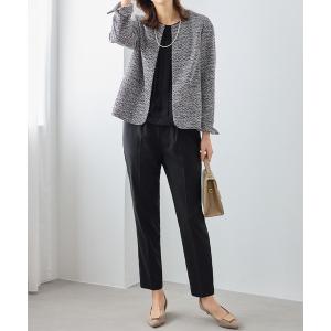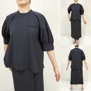 秋冬SALE【シー+/晩夏秋冬/K19355/40%OFF】KIVANCポリレーヨンストレッチピンストライプリブ丸首ブラウスラグラン5分袖・スーツ販売/C+/sps/9i51/3i31b452xx