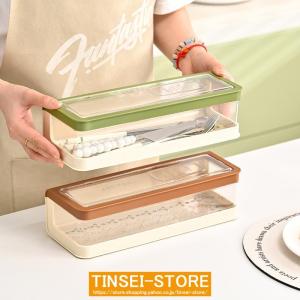 収納ボックス 仕切り ッチン収納ボック 透明蓋 ゃれス 水切り食器かご カトラリー収納 卓上用品 蓋付き カトラリーケース ロング グリーン