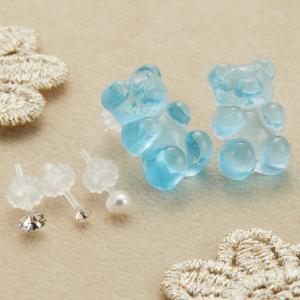 ピアス 日本製 樹脂製ポスト 5点セット クマ テディベア パール ワンストーン 個性的 ユニーク 金属アレルギー対応 爆買