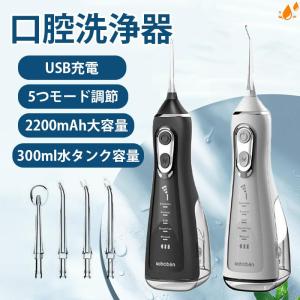 デンタルウォッシャー タンクレス 4種類水流モード 替えノズル 4本(2色×2本) 防水 IPX7 充電式 専用充電スタンド付き 小型 軽量 DENTNICS ホワ…