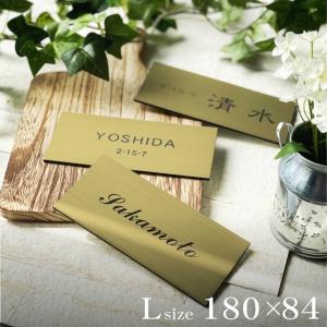 表札 (名字のみ) 180×84 L 真鍮風 ゴールド シンプルで美しい計算された余白デザインが際立つモダン表札 オシャレなヘアライン 金色 屋外OK メール便送料無料