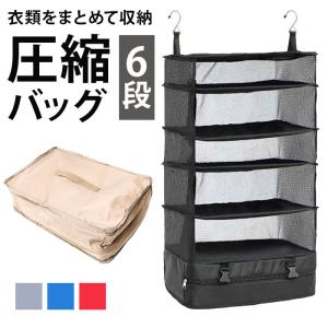 旅行 圧縮 吊り下げ 5段 通販 オーガナイザー トラベルポーチ 圧縮バッグ クローゼット 吊り下げ収納 インナーバッグ パッキング ファスナー 衣類収納