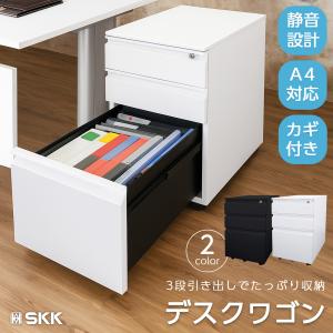 デスクワゴン 3段 鍵付き キャスター付き オフィスワゴン スチール 完成品 引き出し 大容量 A4対応 SKK