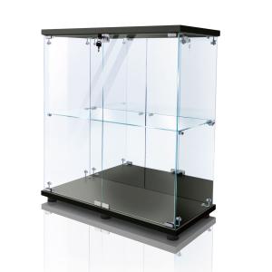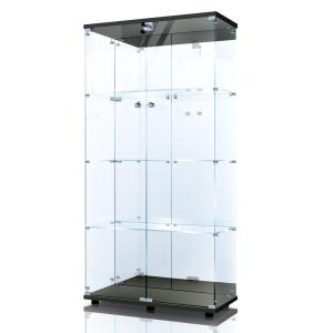 生活グッズラボ ショーケース ガラスケース 2段両扉タイプ(鍵付き) 幅80.7×奥行き36.5×高さ86cm フィギュアケース 棚 キャビネット 大型(ブラック)
