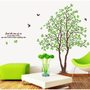 ウォールステッカー 大サイズ グリーンリーフの木と小鳥 壁シール シンプル ツリー 外の景観 はがせる 木の葉