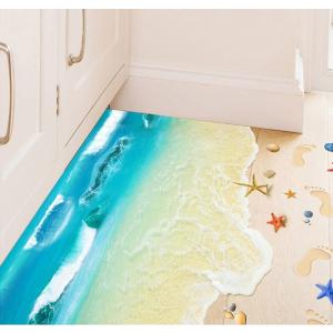 ウォールステッカー 波の砂浜 ヒトデ 貝殻 床用 ペーパーシール だまし絵 足跡 爽やかな フロア ビーチ