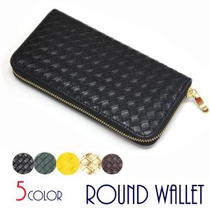 長財布 編みこみ風 フェイク レザー ラウンドファスナータイプ 黒 茶 黄 緑 ブラック ブラウン zakka06 爆買