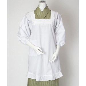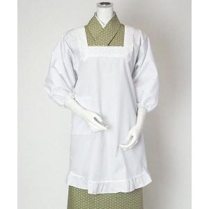 割烹着 和装 白 角衿 フリル付き 撥水 撥油 おしゃれ 90cm丈 LLサイズ 3Lサイズ 70120 70121