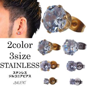 ジルコニア ピアス メンズ キラキラ 3サイズ 8mm 5mm 3mm 金属アレルギー対応 大粒ジルコニア シンプル ゴールド シルバー 金 銀 ボディーピアス メンズ