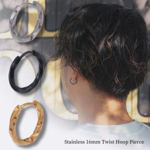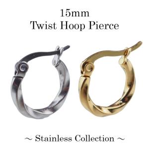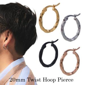 フープピアス メンズ ステンレス ツイスト ピアス メンズ フープ ピアス ゴールド シルバー メンズ ピアス 金属アレルギー対応 直径15mm 片耳価格