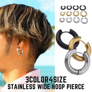 フープピアス ピアス メンズ ステンレス 金属アレルギー対応 ワイド 幅5mm リングピアス ステンレスピアス ノンアレルギー 片耳価格
