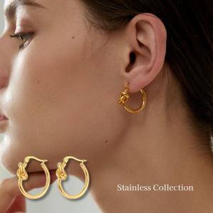 レディース ピアス ノットピアス フープピアス 結び目 つけっぱなし キャッチレス 結び目ピアス ワンタッチ シンプル 両耳価格