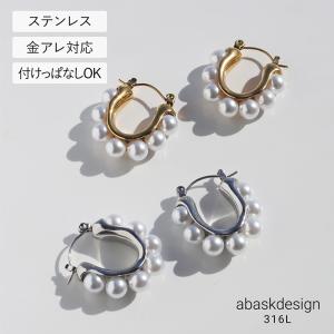 金属アレルギー対応 ピアス パールフープピアス ボリューム サージカルステンレス レディース ゴールド フープ パールアクセサリー パールアクセ 冠婚葬祭