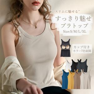 カップ付き タンクトップ Uネック 着心地いい ブラトップ インナー ブラタンクトップ カップ付きインナー ノンワイヤー レディース ストレッチ 大きいサイズ