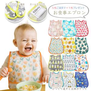 お食事 エプロン 対象商品3枚以上で スナップボタン 名前タグ付き 防水 スタイ 立体 ポケット ベビー キッズ 保育園 赤ちゃん 離乳食 男の子 女の子 爆買