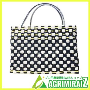 手編みカゴ 1点モノ 黒×黄×白 PPバンドカゴ バスケット 手作り レディース メンズ 2