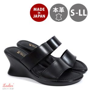 日本製 本革 ダブルベルト ウェッジソール オフィスサンダル サンダル レディース ストラップ 疲れにくい 歩きやすい 黒 ブラック nn502 アキリコ 爆買