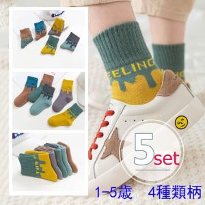 キッズソックス 5足組 男の子 女の子 靴下 通年用 通園 通学 カラフル おしゃれ くま イエロー オレンジ ブルー グリーン ブラウン ピンク