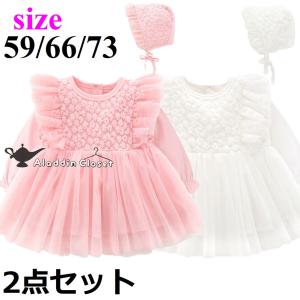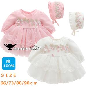 セレモニードレス 新生児 赤ちゃん 60 70 80 ベビードレス ワンピース ホワイト ピンク 長袖 帽子付き 花柄 フォーマル 初節句 誕生日 パーティー